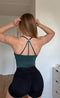 Hermosa espalda en este😍Tengo pequeños senos y creo que este funciona bien como sujetador deportivo para entrenamientos normales/livianos. Para sesiones intensas con alta pulsación, no lo usaría, ya que el material es grueso (se calienta más) y porque se siente apretado alrededor del diafragma, lo que dificulta la respiración.