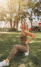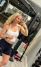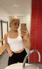 Top suave que se seca súper rápido después del lavado. Bonita longitud para combinar con leggings de alta cintura o para un atuendo fresco en verano. Me encanta en combinación con los pantalones cortos ruched de Famme.