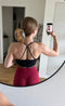 Top muy bonito, pero los inserts se deslizan un poco. Tengo pechos grandes, así que se queda un poco corto en soporte si se quitan los inserts. De lo contrario, es un top muy bonito con una longitud perfecta. Termina justo donde comienzan los tights.